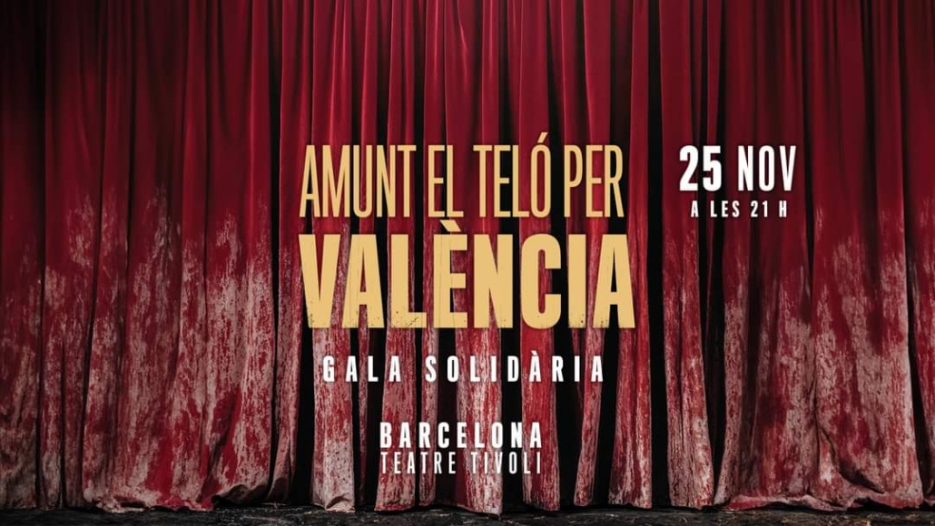 El Teatre Tívoli de Barcelona acollirà el proper dilluns 25 de novembre a les 21 hores, la gala solidària “Amunt el Teló per València”, amb l’objectiu de mostrar el suport incondicional de la comunitat escènica als companys i companyes de València i ajudar econòmicament el sector de la Comunitat Valenciana, greument afectat per les inundacions provocades per la DANA. Aquesta gala tindrà àmbit estatal, se celebrarà a Barcelona i serà coordinada per les entitats del sector públic i privat català. Tota la recaptació de la gala serà destinada als professionals de les arts escèniques de València, sota la coordinació d’AVETID, l’Associació d’Empreses d’Arts escèniques del País Valencià.